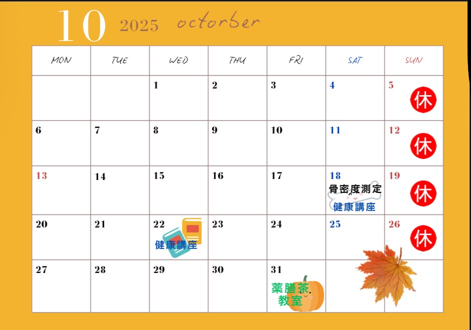 10月はなんといっても、骨密度測定会×健康講座を行います!